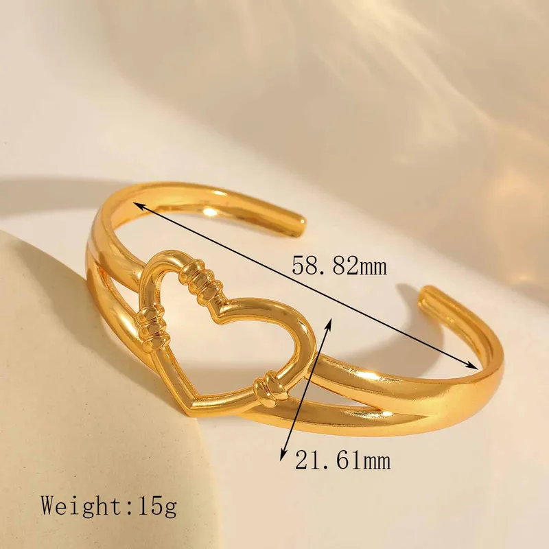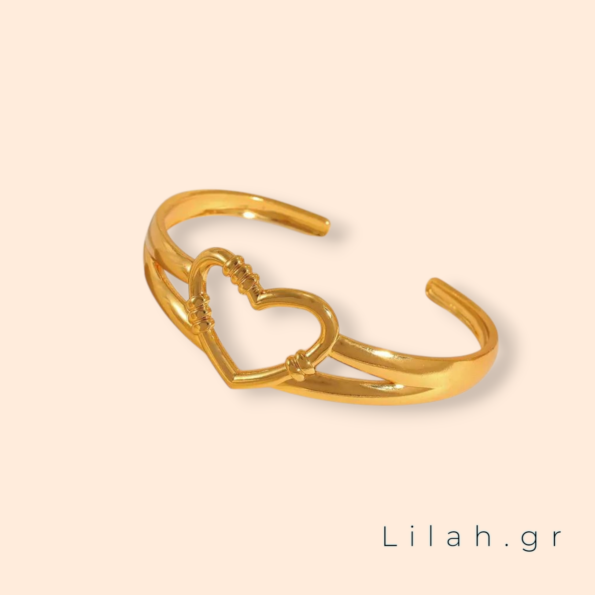 Βραχιόλι χειροπέδα με καρδιά σε χρυσό χρώμα